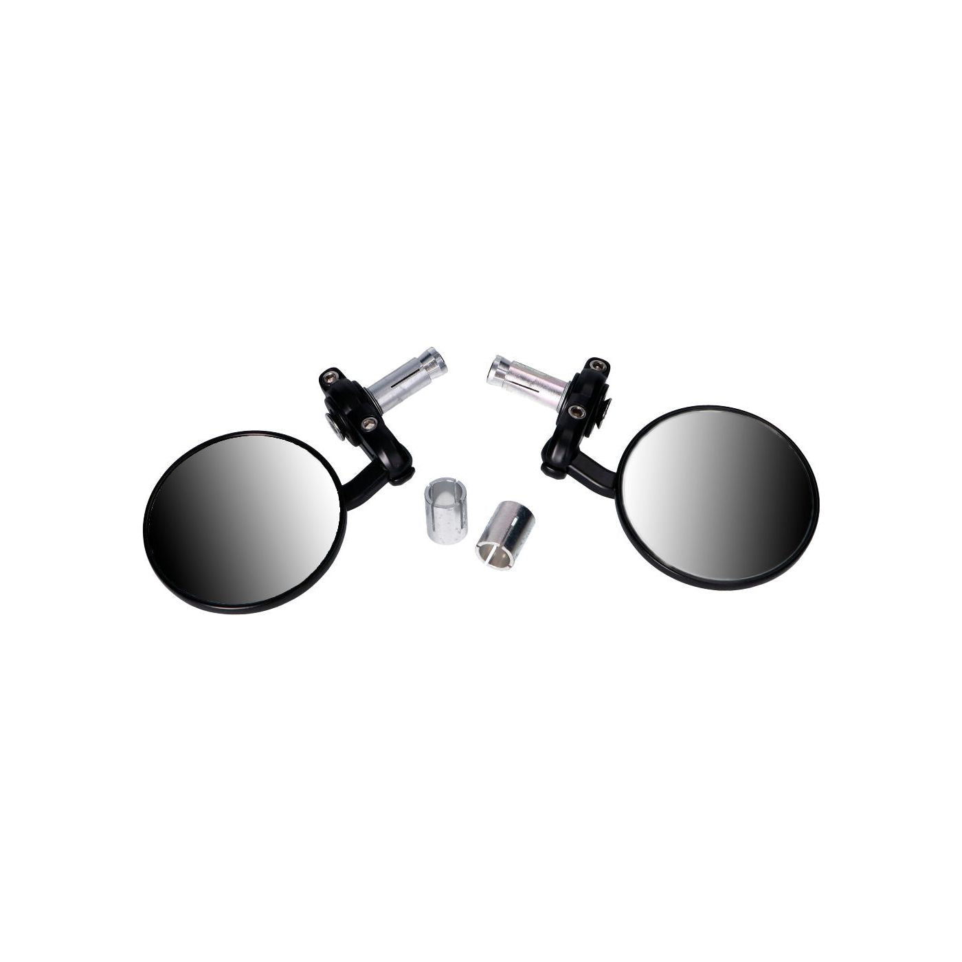 Backspegelar i sats om två stycken. CNC-fräst och svarta för montering på styrändarna. Montera antingen med pressklämman som går in...