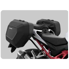 Set med halvstyva sidoväskor (hartstillverkade) Honda-märktoch speciellt designad för att passa cykelns form, medvattentäta innerväskor och hänglås ingår. Väskornahar en...