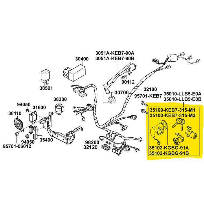 Ett komplett tändningslås till Kymco Super 9 & YUP 250 Levereras med Tändning/styrlås, monteringsring, sadellås, lås till luckan och 2st...