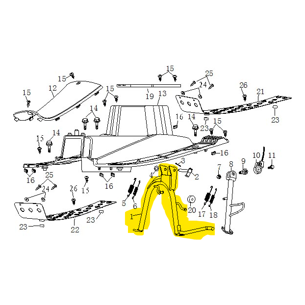 Ett Komplett sidostöd till Kymco Agility 125 Följer med Skruv, fjäder och bricka till fjäderfästet Längd: 27cm Kan även passa...