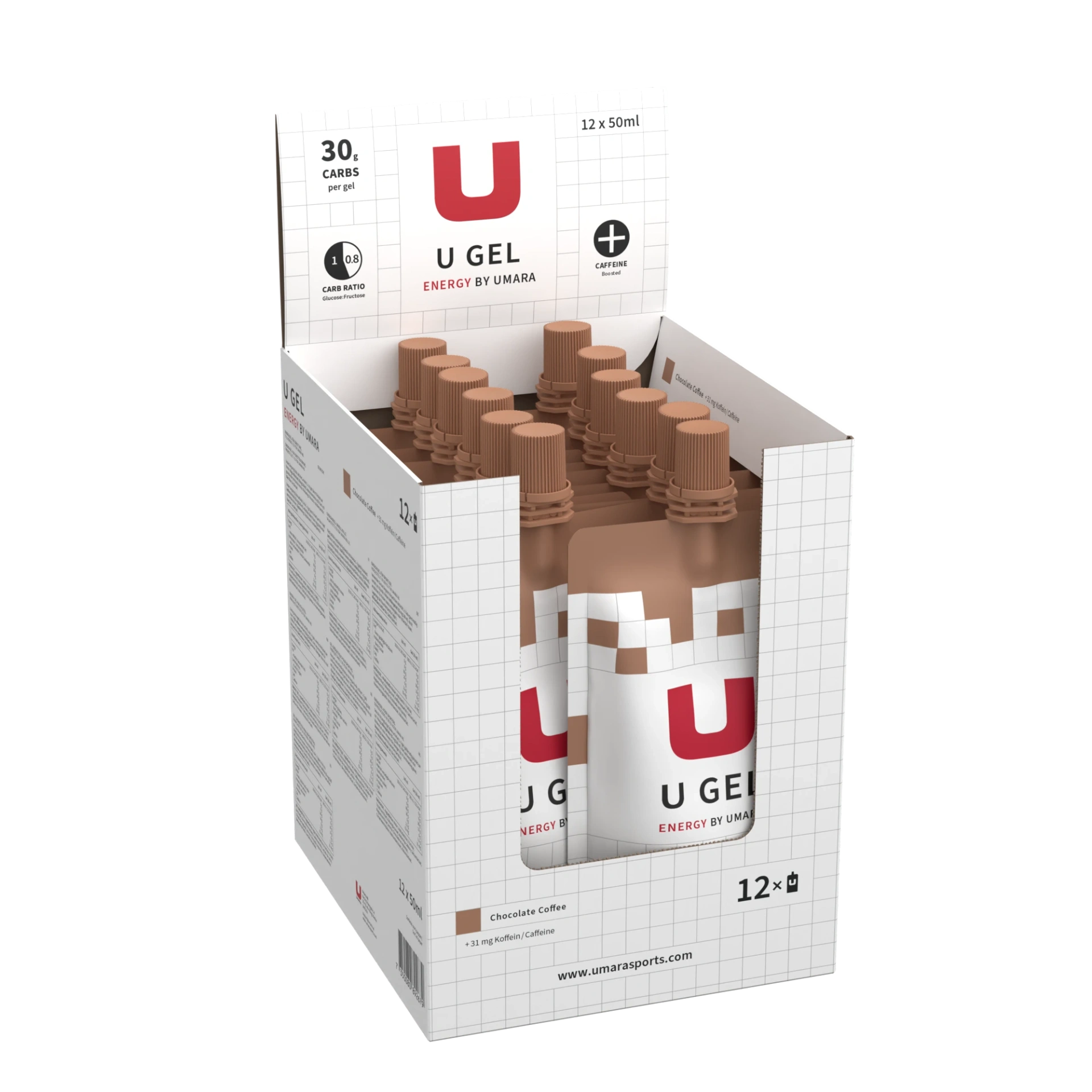 UMARA U GEL 30g Kolhydrater Skruvkork 12-pack - Choklad / Kaffe + Koffein