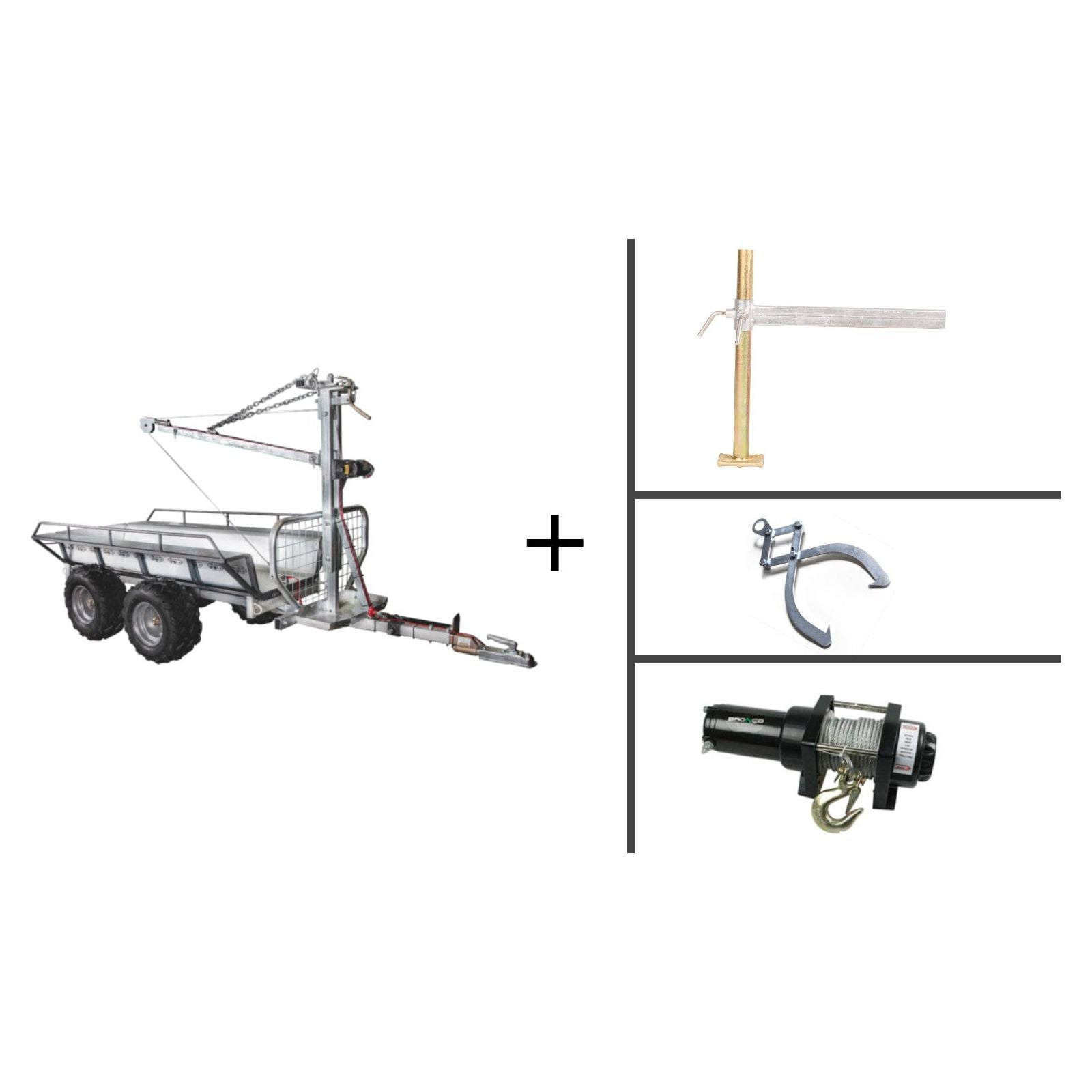 Bronco PAKETPRIS Timmervagn ATV 200 m. Kran, Vinsch, Fäste & Sax