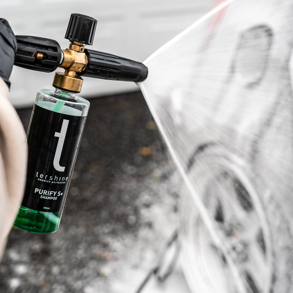 Purify S+ är ett så kallat keramiskt schampo med doft av grönt äpple som utöver att rengöra ger massvis av härlig glossy gloss och lämnar en skyddande hinna, som blir mycket vattenavstötande! Perfekt för dig som enkelt vill lackskydda fordonet utan massa krusiduller eller för att boosta befintliga skydd.